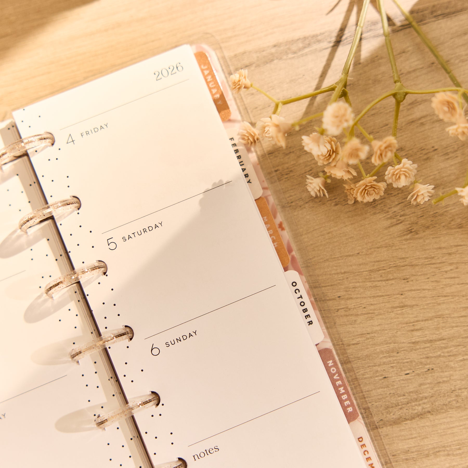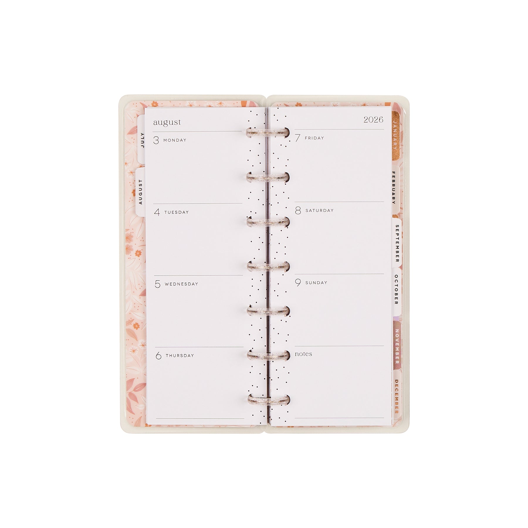 Bring a little warmth and serenity to your everyday planning with the Dune Hues Skinny Mini Spiral Planner. This 12-month dated planner (July 2026–June 2027) features a soft, sun-washed palette of blush tones, gentle patterns, and delicate foil accents that capture the calming beauty of drifting desert hues. Compact and elegant, it’s designed to bring a peaceful touch to even your busiest days.