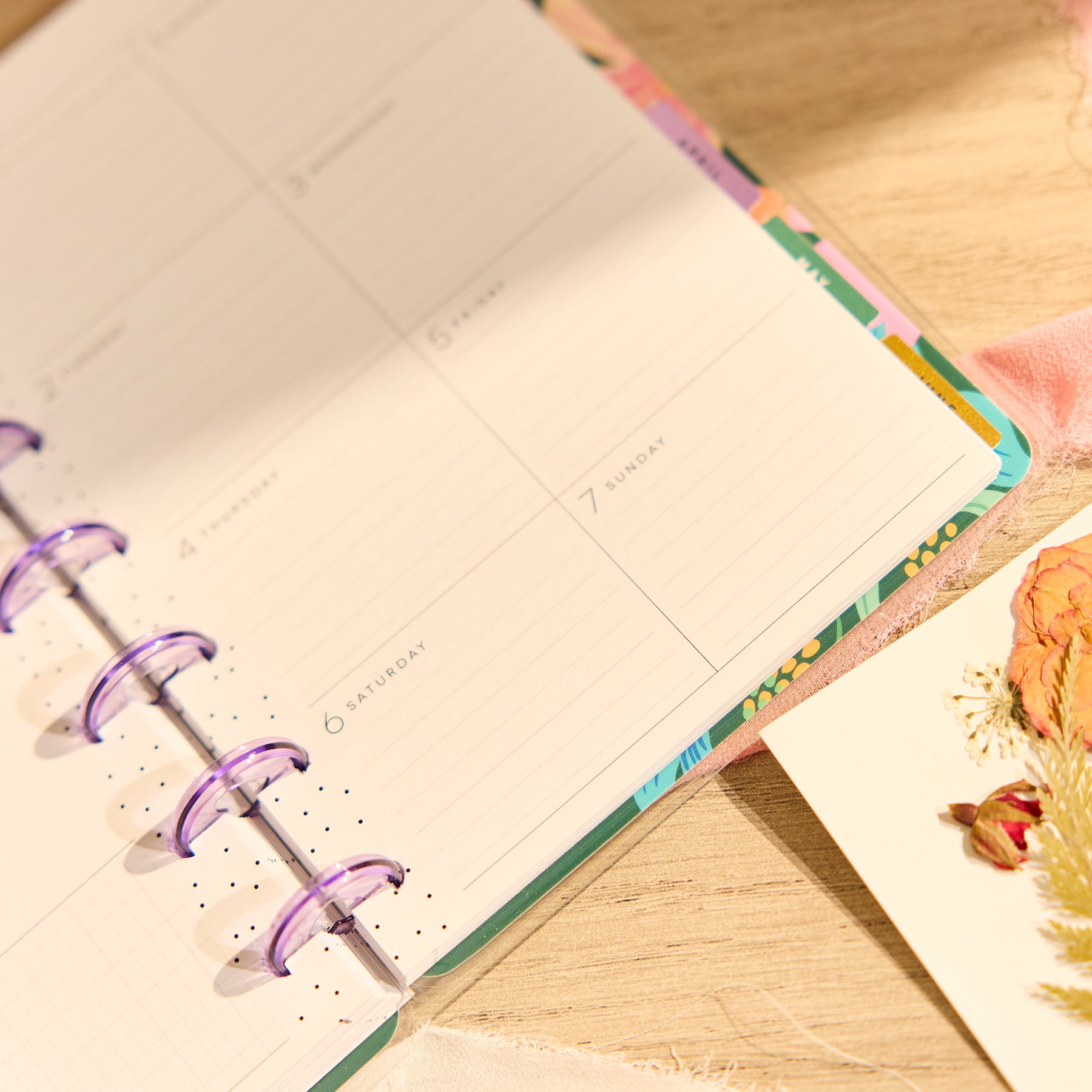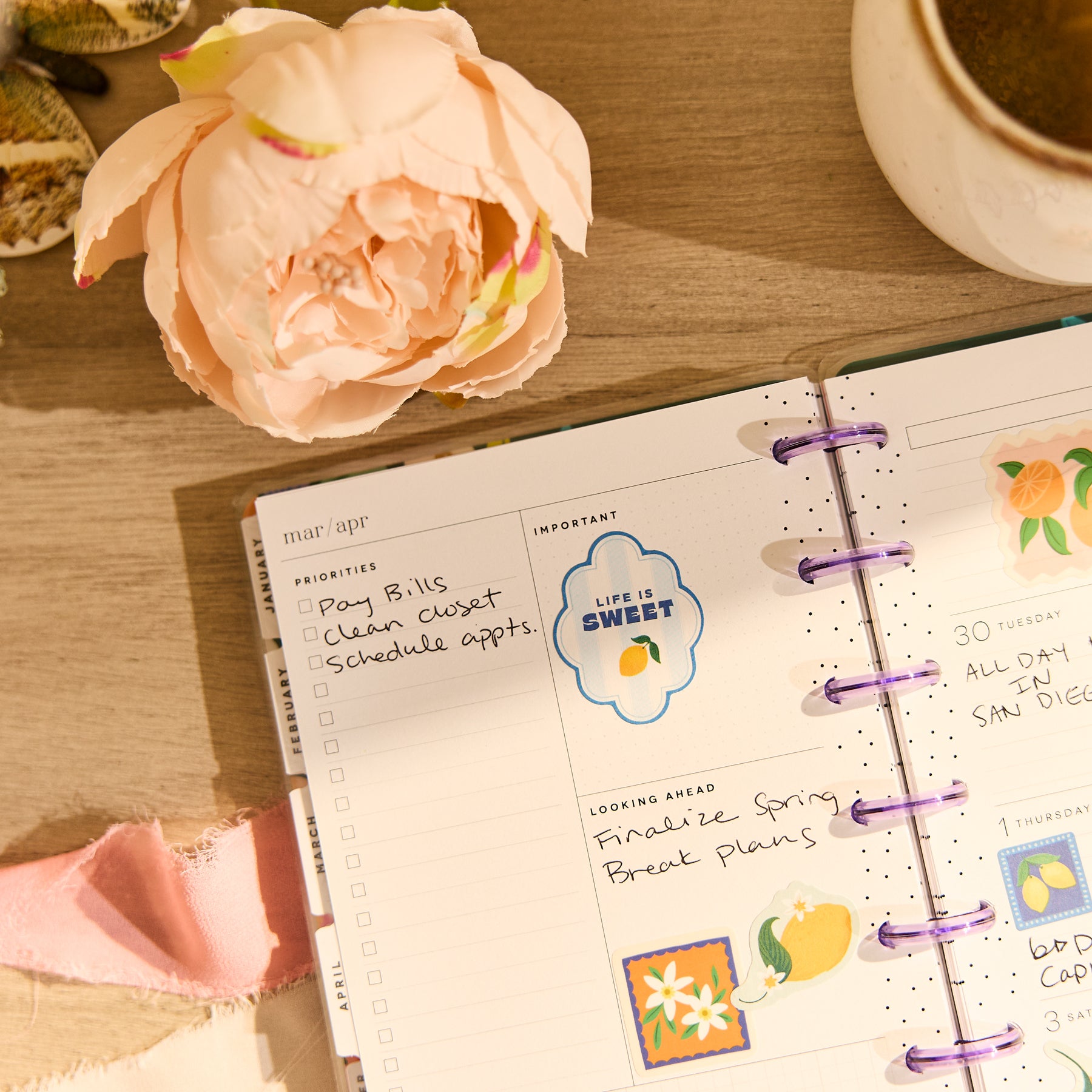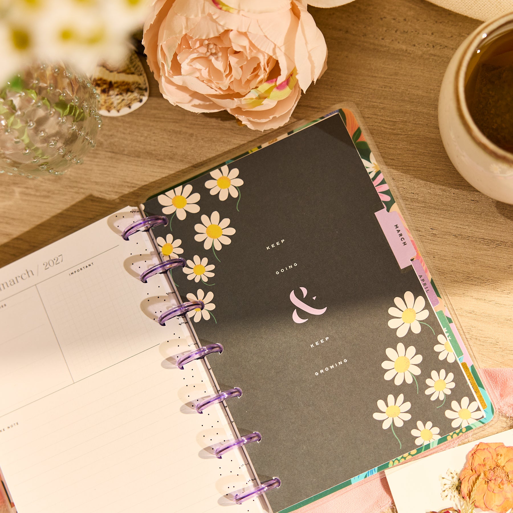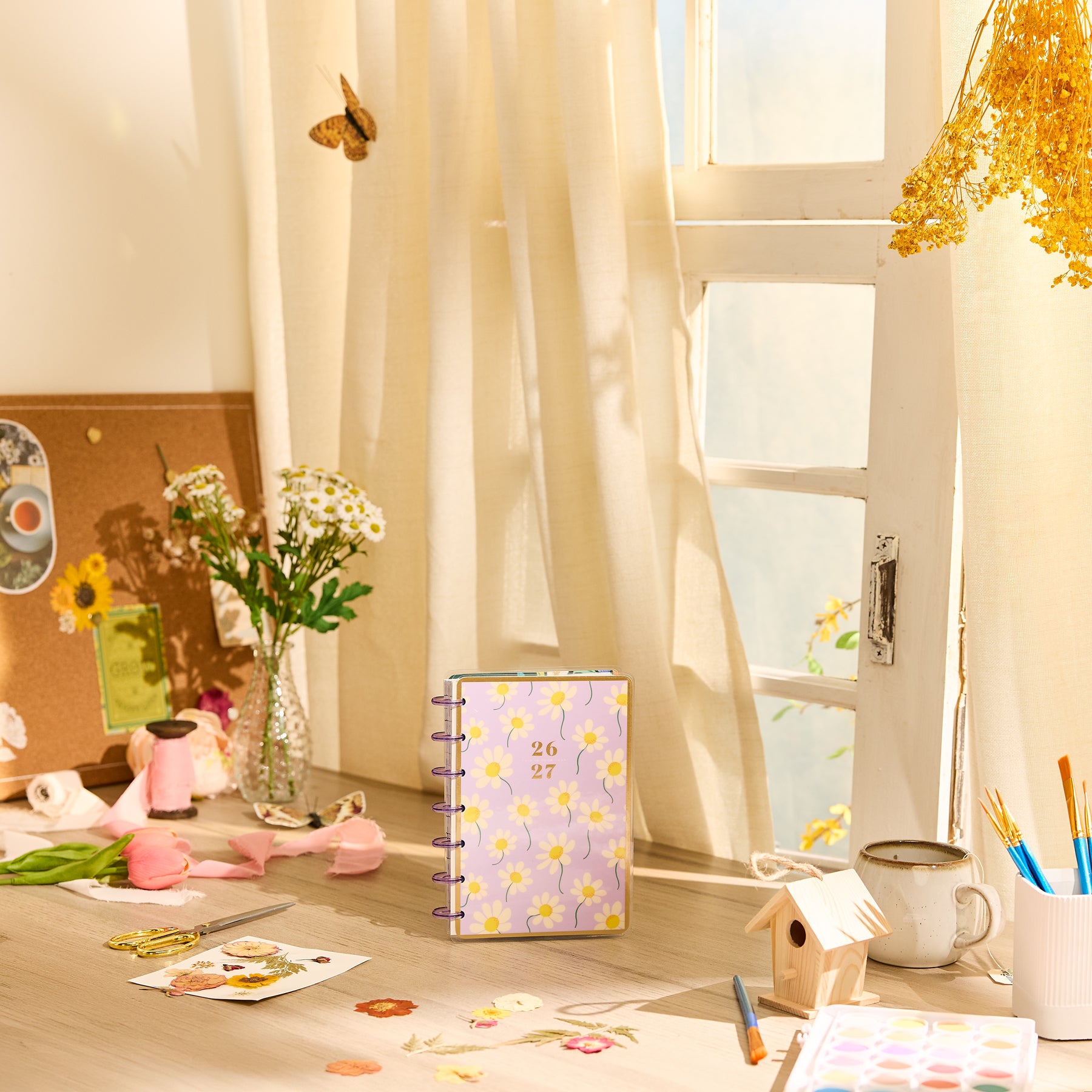 Brighten every day of planning with the Golden Garden Mini Planner. This 12-month dated planner (July 2026-June 2027) features a cheerful field of hand-illustrated daisies, set against a soft lavender background, for a look that’s warm, sunny, and full of optimism. Subtle specialty foil details add a gentle shimmer, making this petite planner feel extra special.