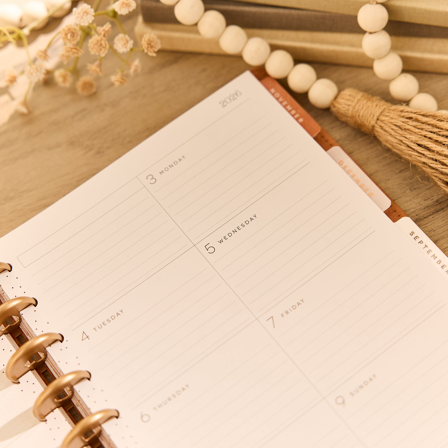 Find beauty in simplicity with the Dune Hues Classic Dashboard Planner. This 12-month dated planner (July 2026–June 2027) features a specialty velvet cover in soft dune-inspired tone. Delicate copper accents and minimal botanical artwork complete the elevated, serene feel.