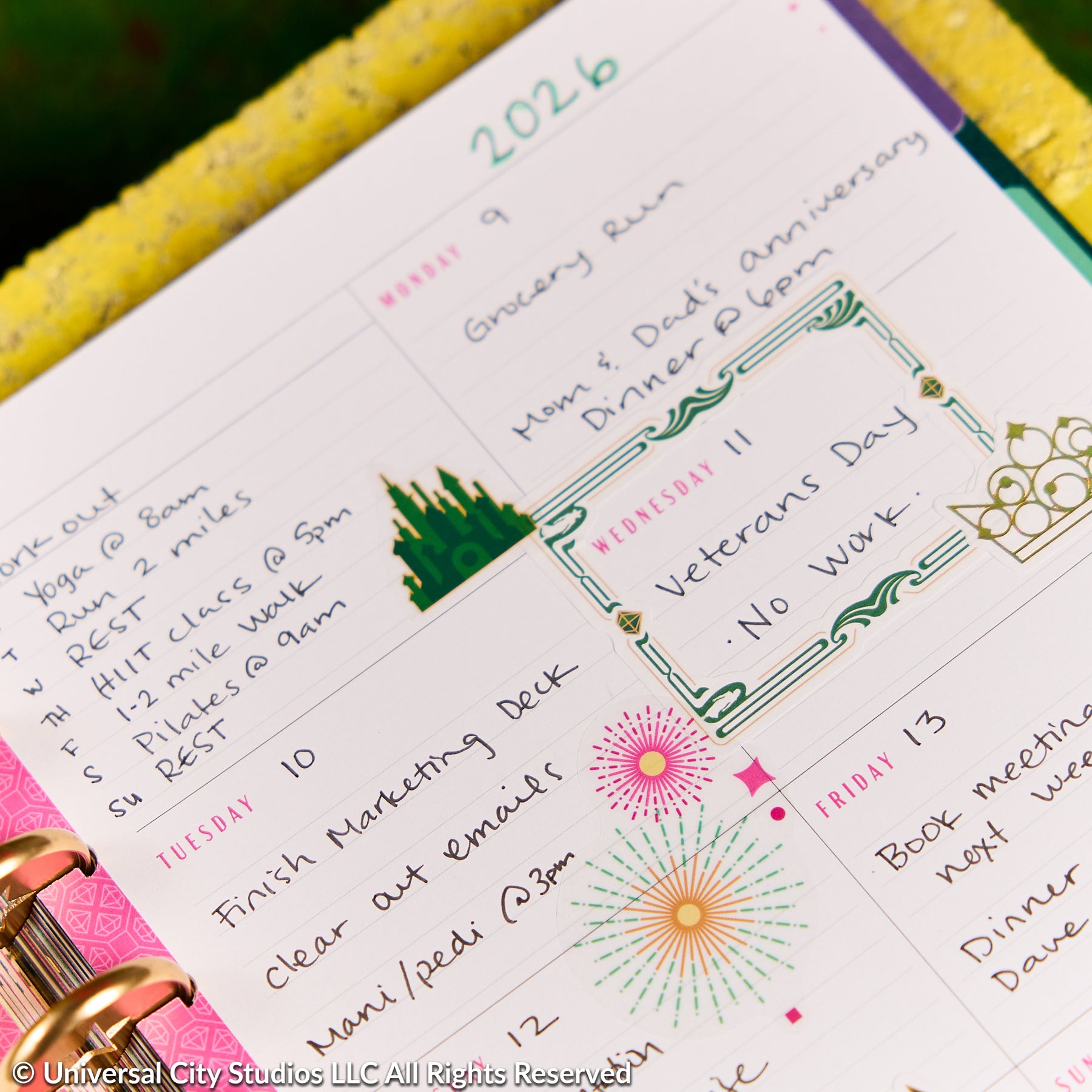 Take a step down the shimmering path with this Wicked Wizomania planning bundle - a show-stopping collection inspired by Glinda, Elphaba, bold graphics, art-deco glamour, and the fantastical world of Oz. Designed to make planning feel magical, this limited-edition set brings together vibrant illustrations, whimsical characters, and dazzling details that turn every to-do into a moment worthy of the spotlight. Whether you're mapping your days or dressing up your spreads with Amazifying! flair, this bundle is your ticket to a wonderfully wicked planning experience.
