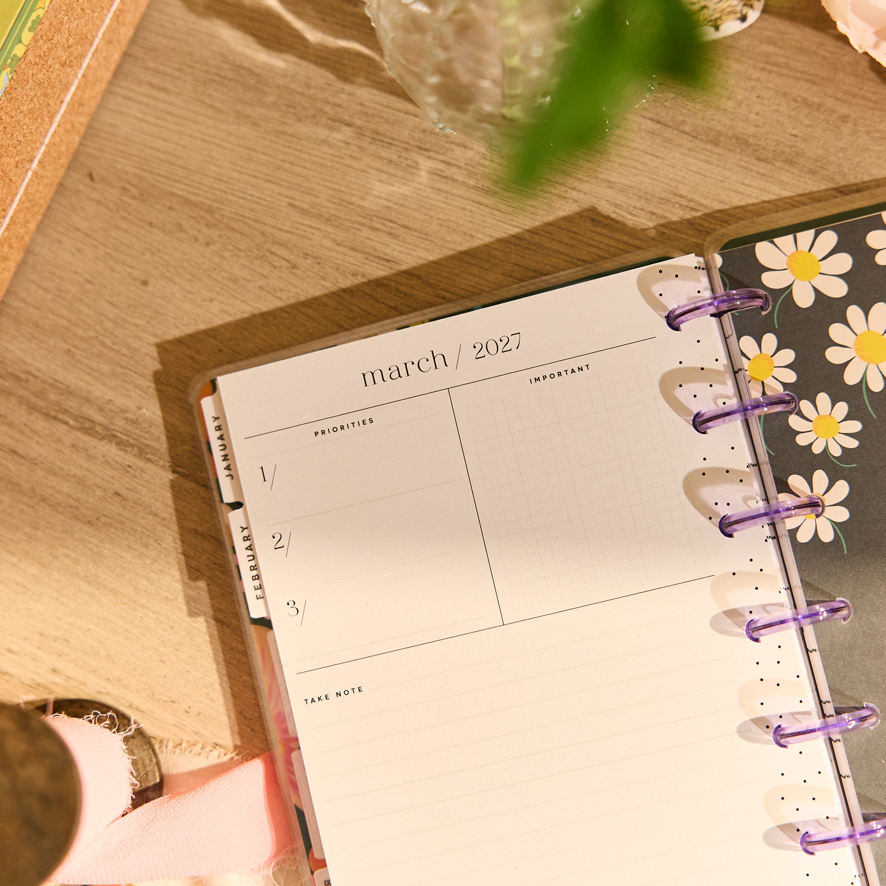 Brighten every day of planning with the Golden Garden Mini Planner. This 12-month dated planner (July 2026-June 2027) features a cheerful field of hand-illustrated daisies, set against a soft lavender background, for a look that’s warm, sunny, and full of optimism. Subtle specialty foil details add a gentle shimmer, making this petite planner feel extra special.