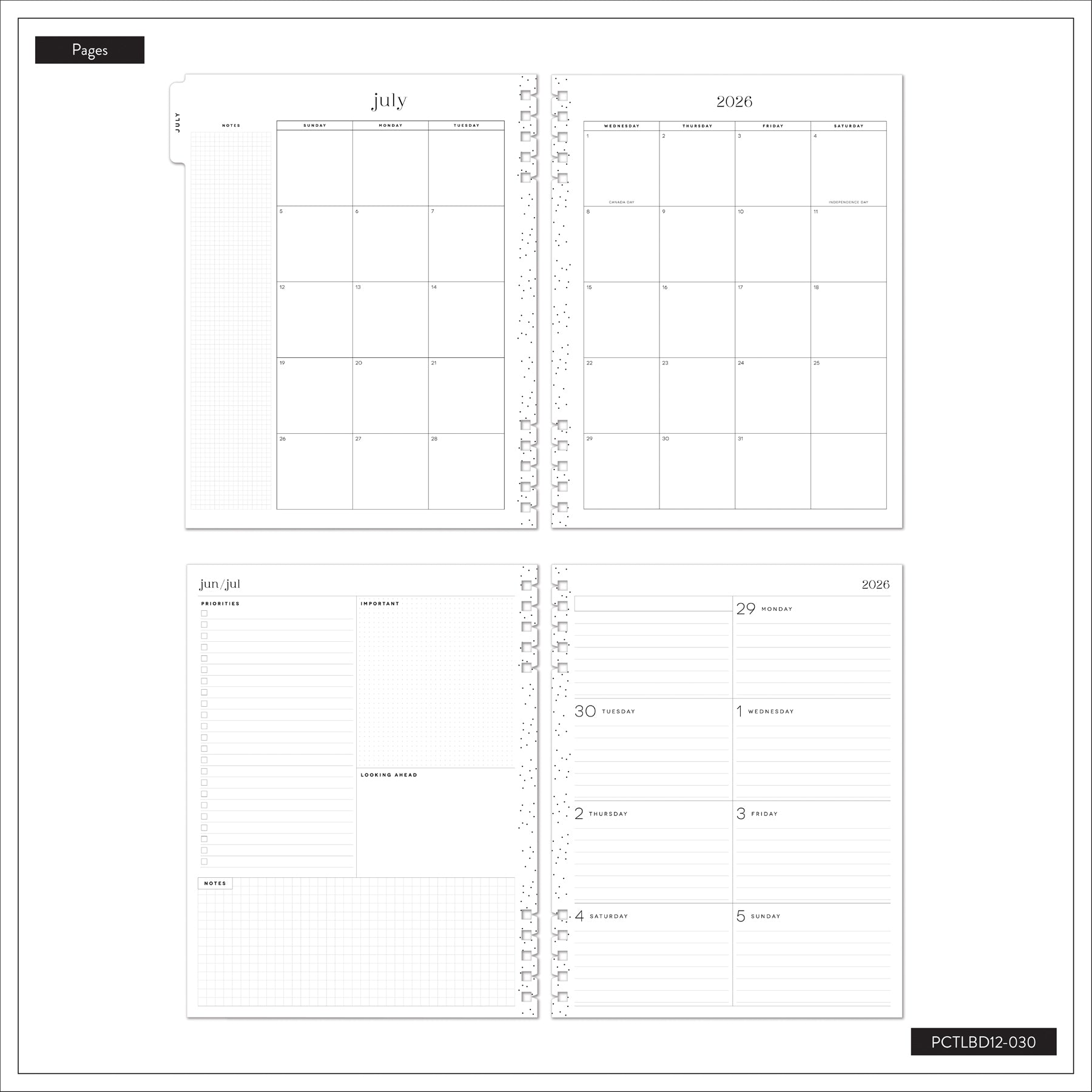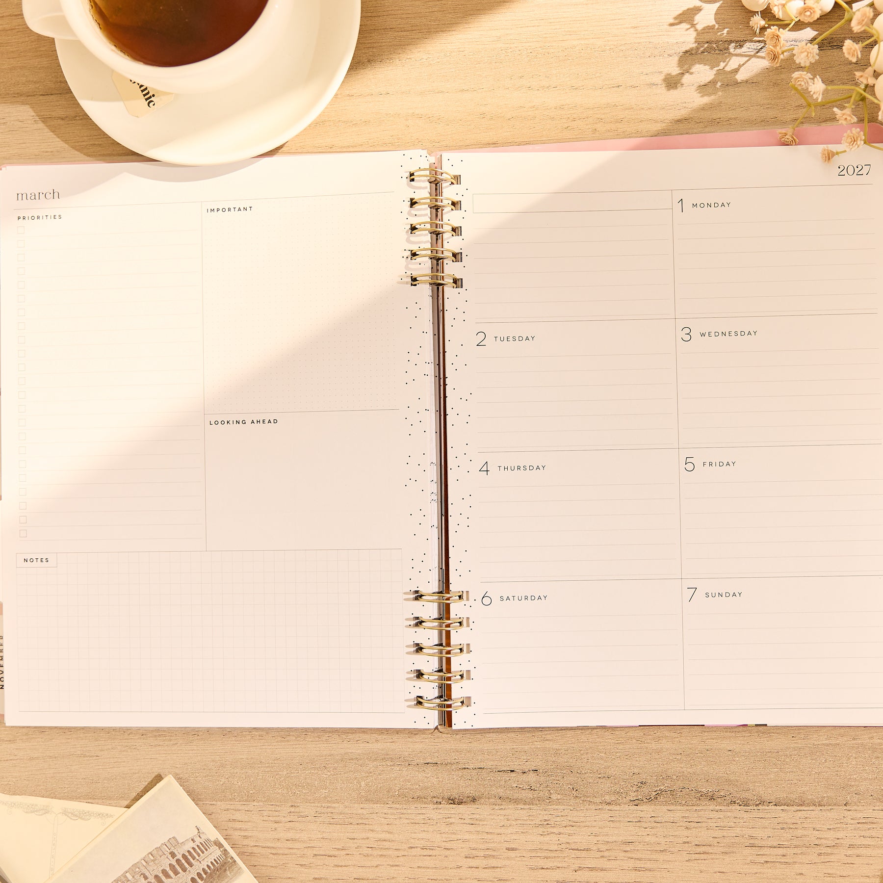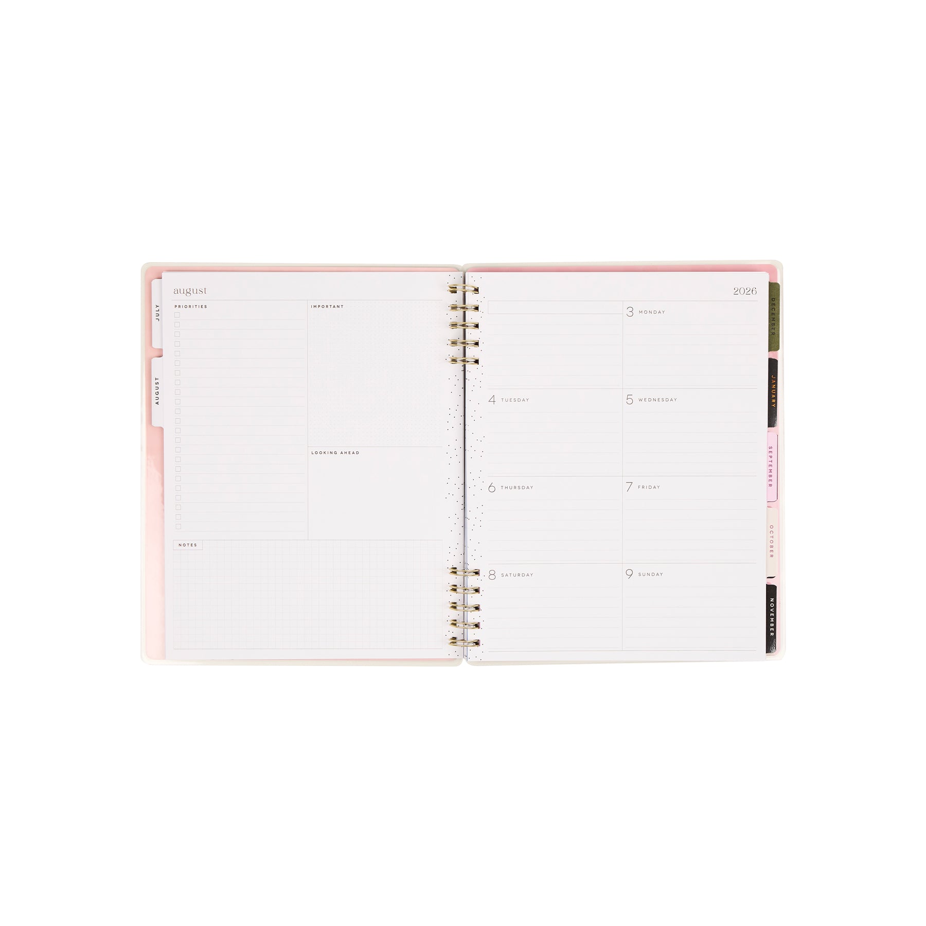The customizable spiral binding makes it easy to add, remove, or rearrange pages so your planner always fits your planning style.