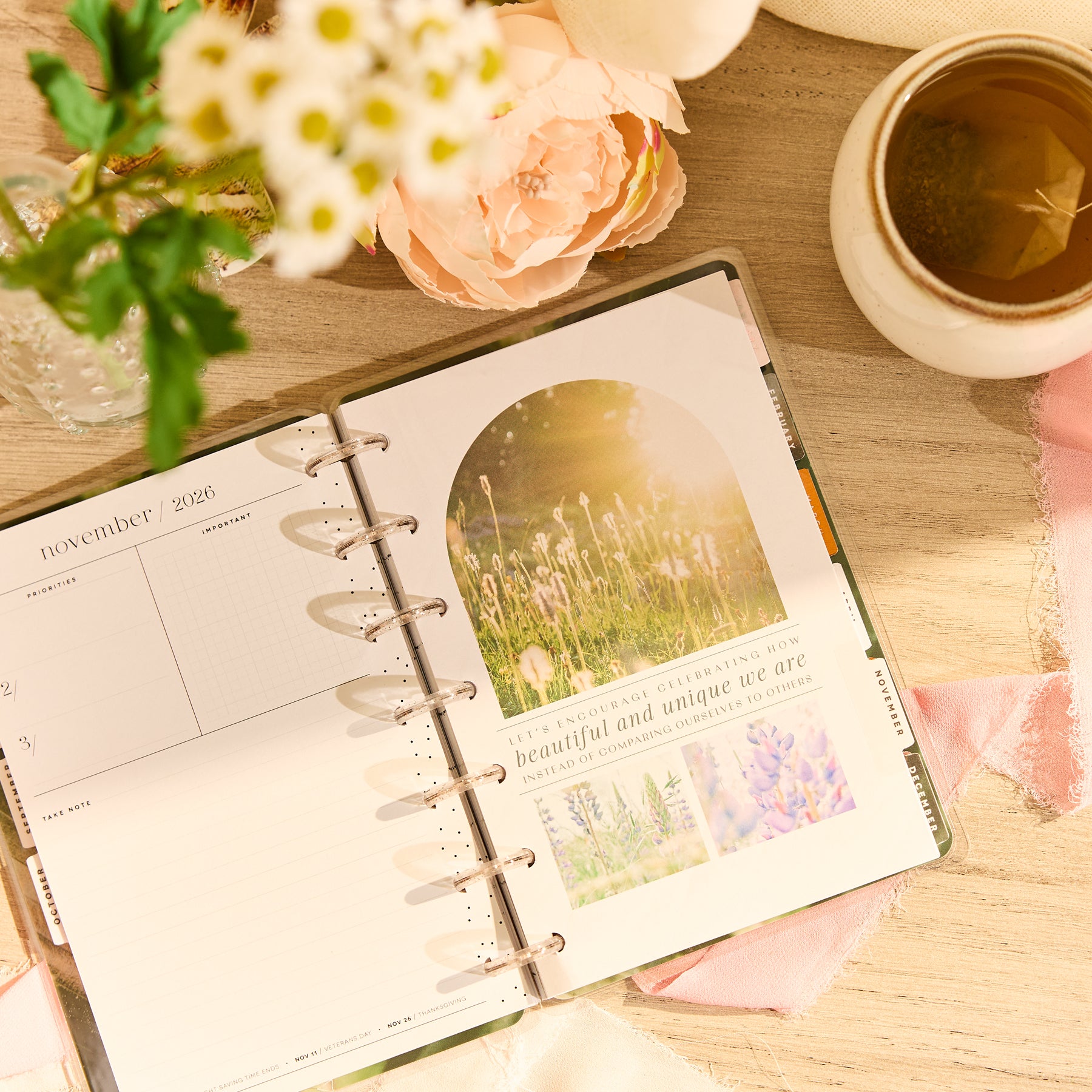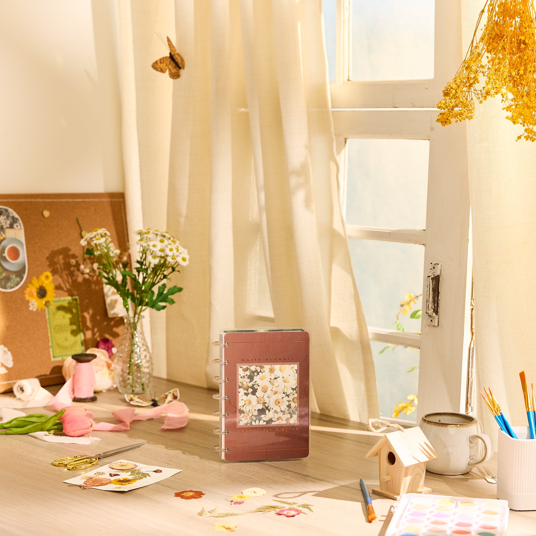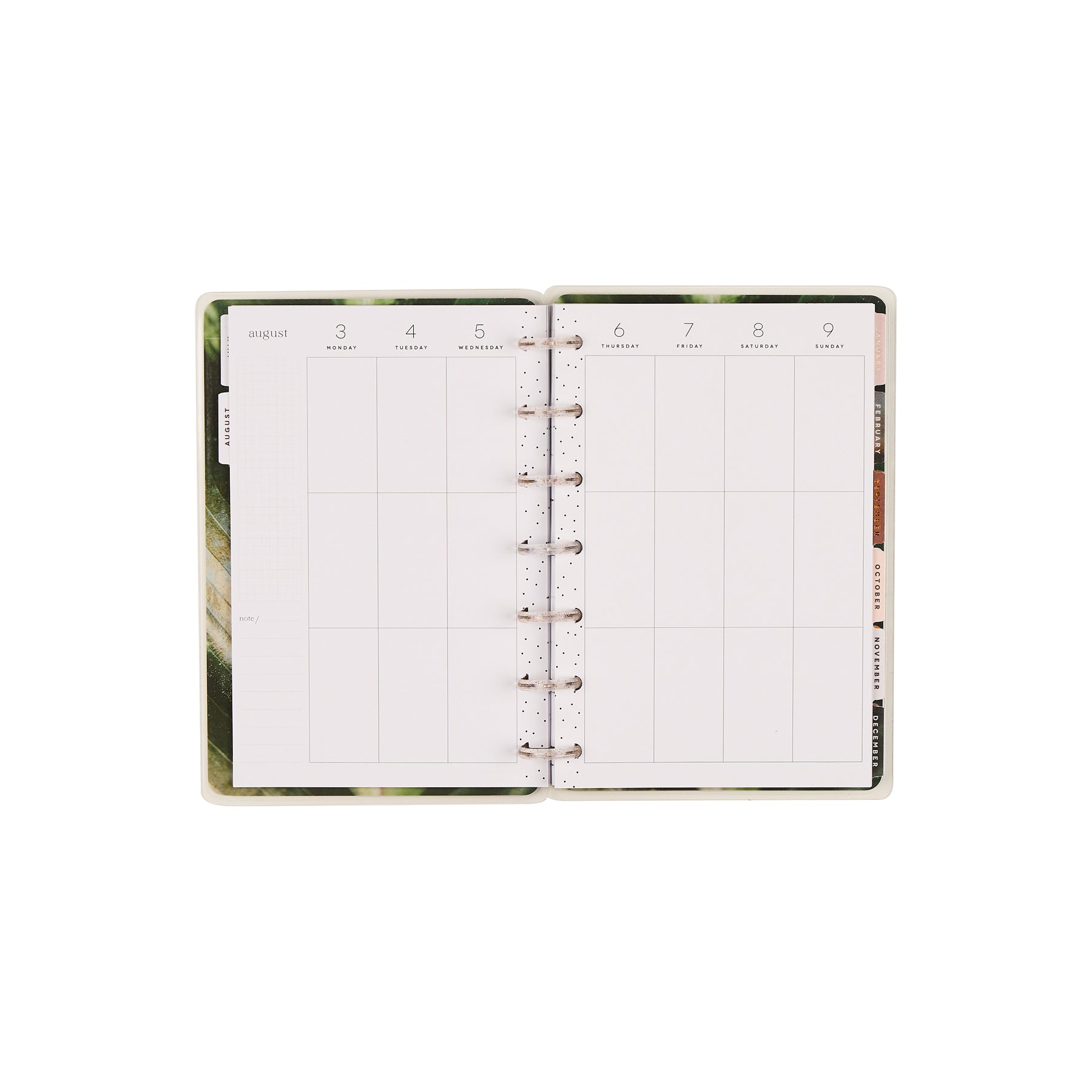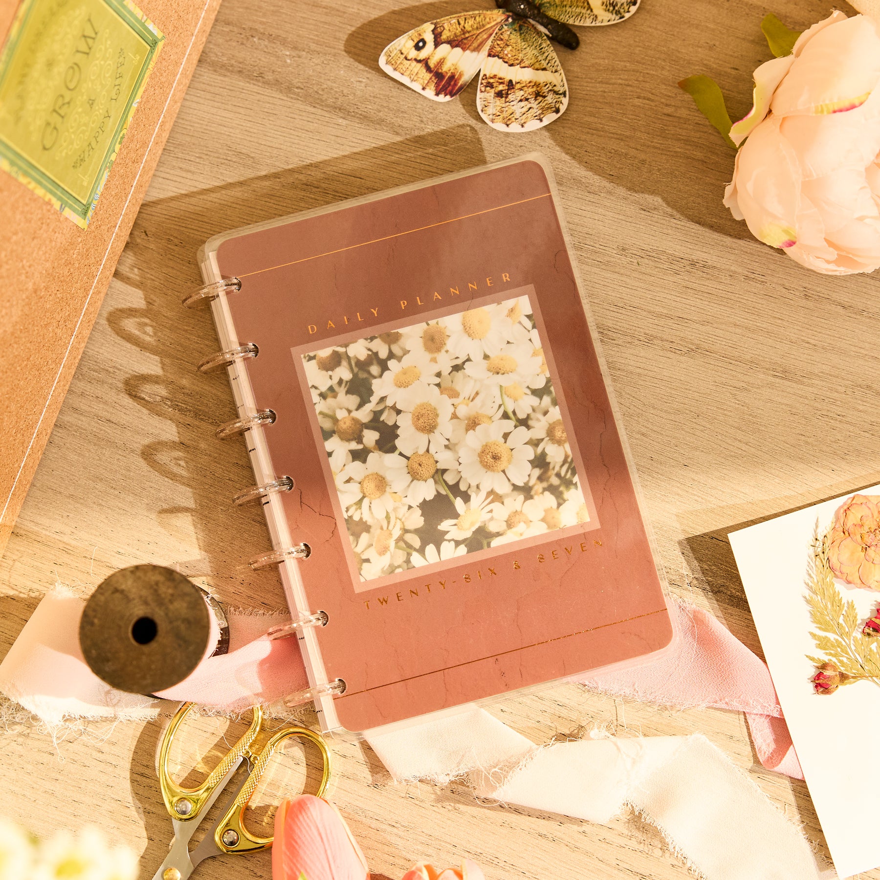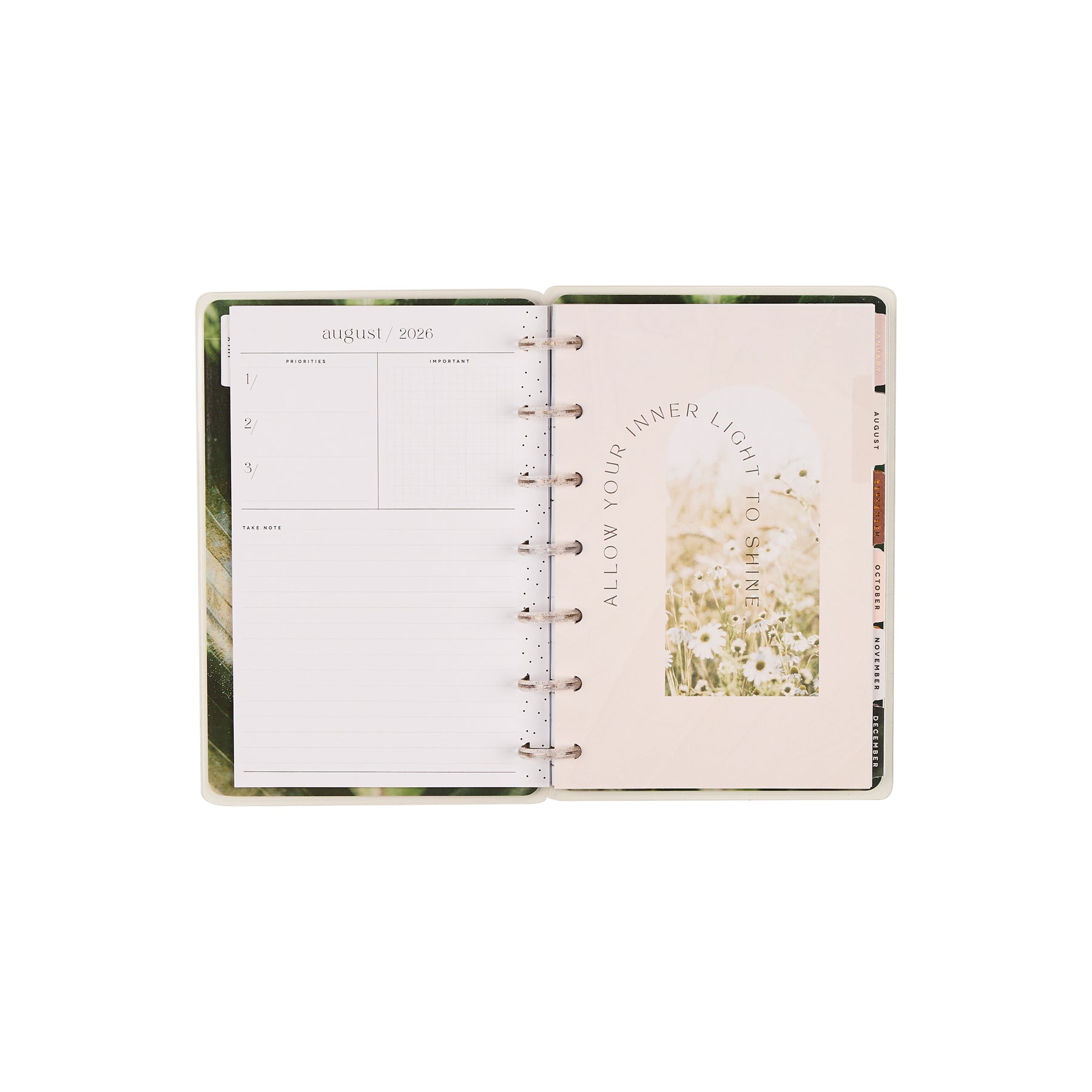 Find calm in the everyday with the 2026 - 2027 Modern Nature Mini Planner. This 12-month dated planner (July 2026–June 2027) brings soft earth tones, botanical artwork, and warm rose-gold accents together for a grounding, nature-inspired planning experience. The cover features a field of cheerful daisies framed with subtle texture - a gentle reminder to slow down, breathe deeply, and enjoy the season you’re in.