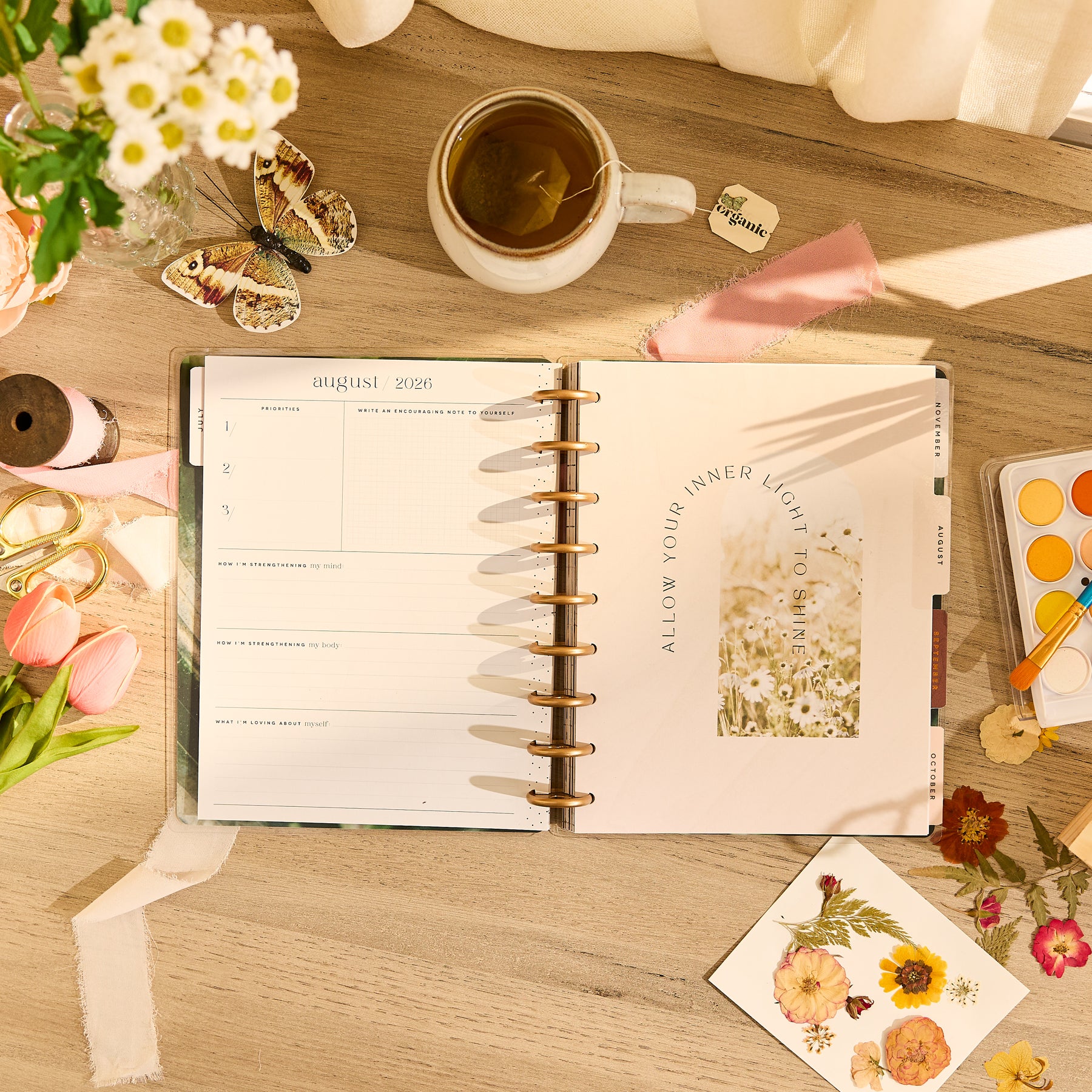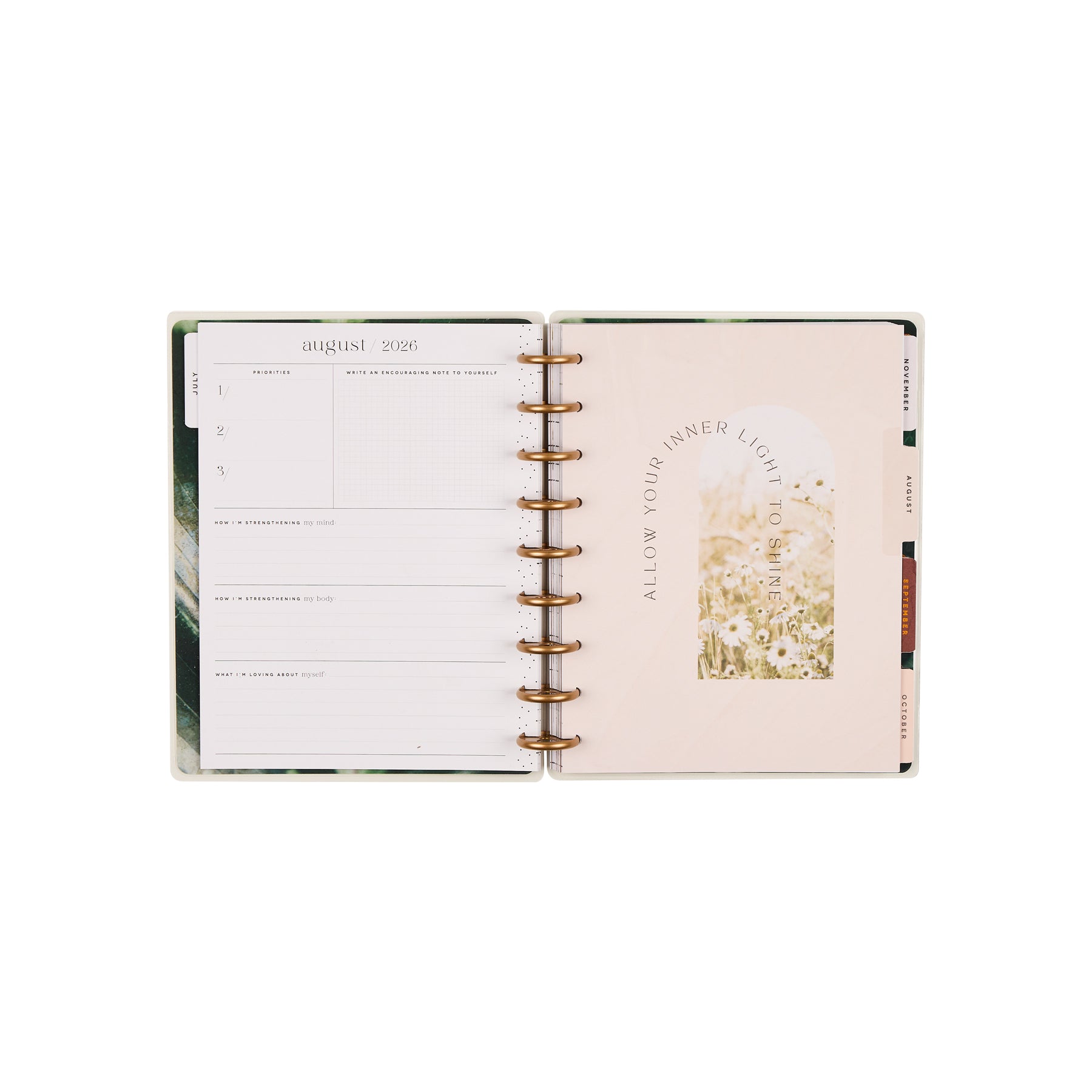 Find balance, presence, and a fresh start with the 2026 - 2027 Modern Nature Wellness Planner. This 12-month dated planner (July 2026 - June 2027) features a soft, serene cover filled with blooming daisies and calming earth tones - paired with delicate copper foil accents that shimmer gently in the light. It’s your daily reminder to slow down, breathe deeply, and make space for what truly matters.