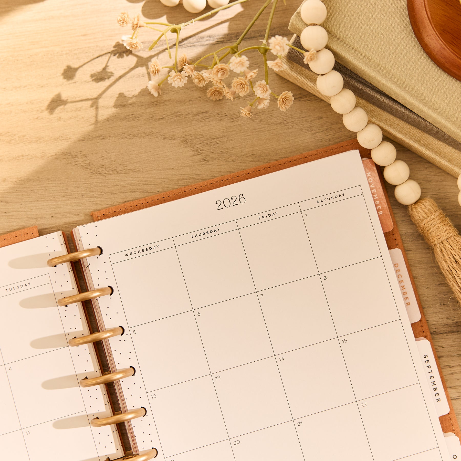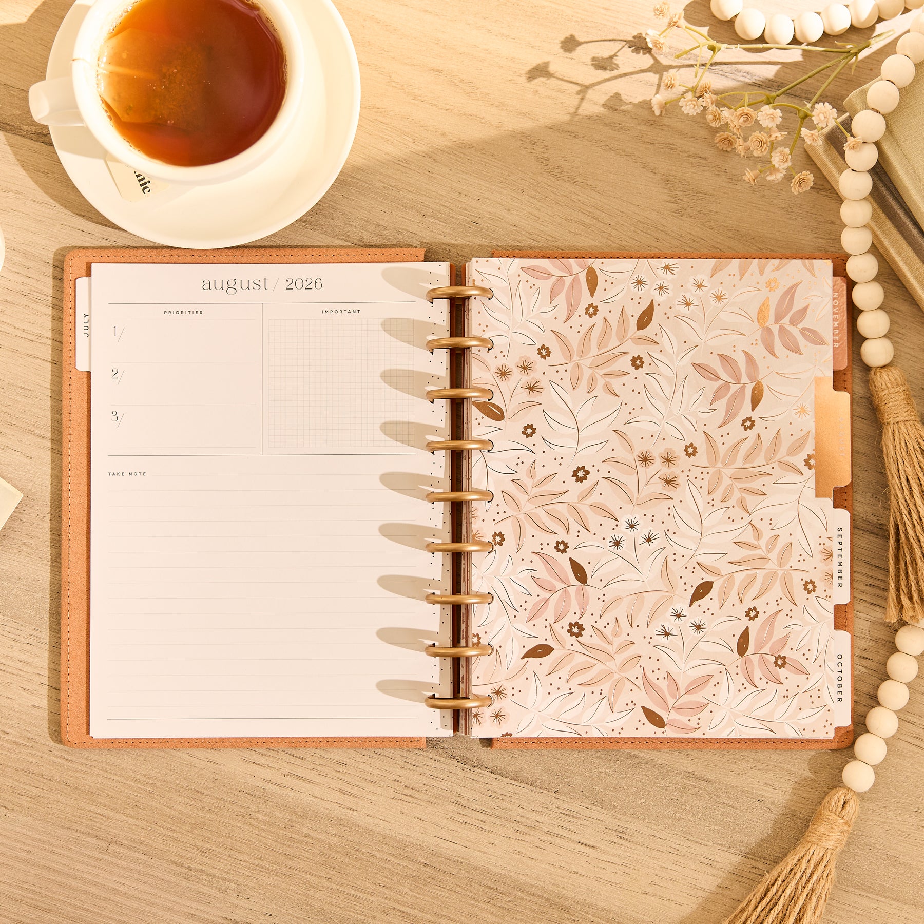 Find beauty in simplicity with the Dune Hues Classic Dashboard Planner. This 12-month dated planner (July 2026–June 2027) features a specialty velvet cover in soft dune-inspired tone. Delicate copper accents and minimal botanical artwork complete the elevated, serene feel.