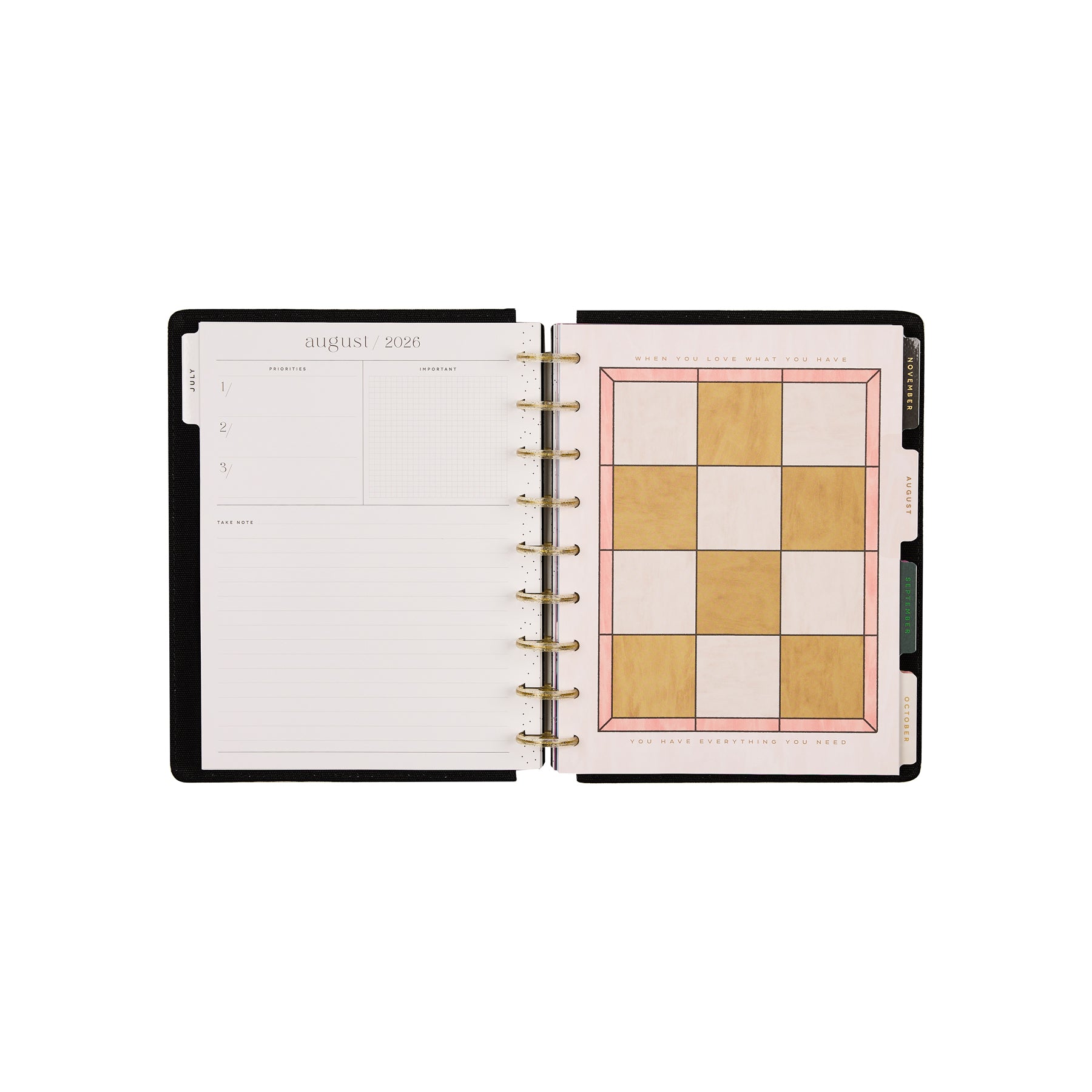 This 12-month planner runs from July 2026–June 2027, giving you plenty of space to map out your goals, organize your schedule, and stay mindful throughout the year. The dashboard layout offers a weekly overview with dedicated spaces for priorities, to-dos, and notes - ideal for list-makers and visual planners alike!