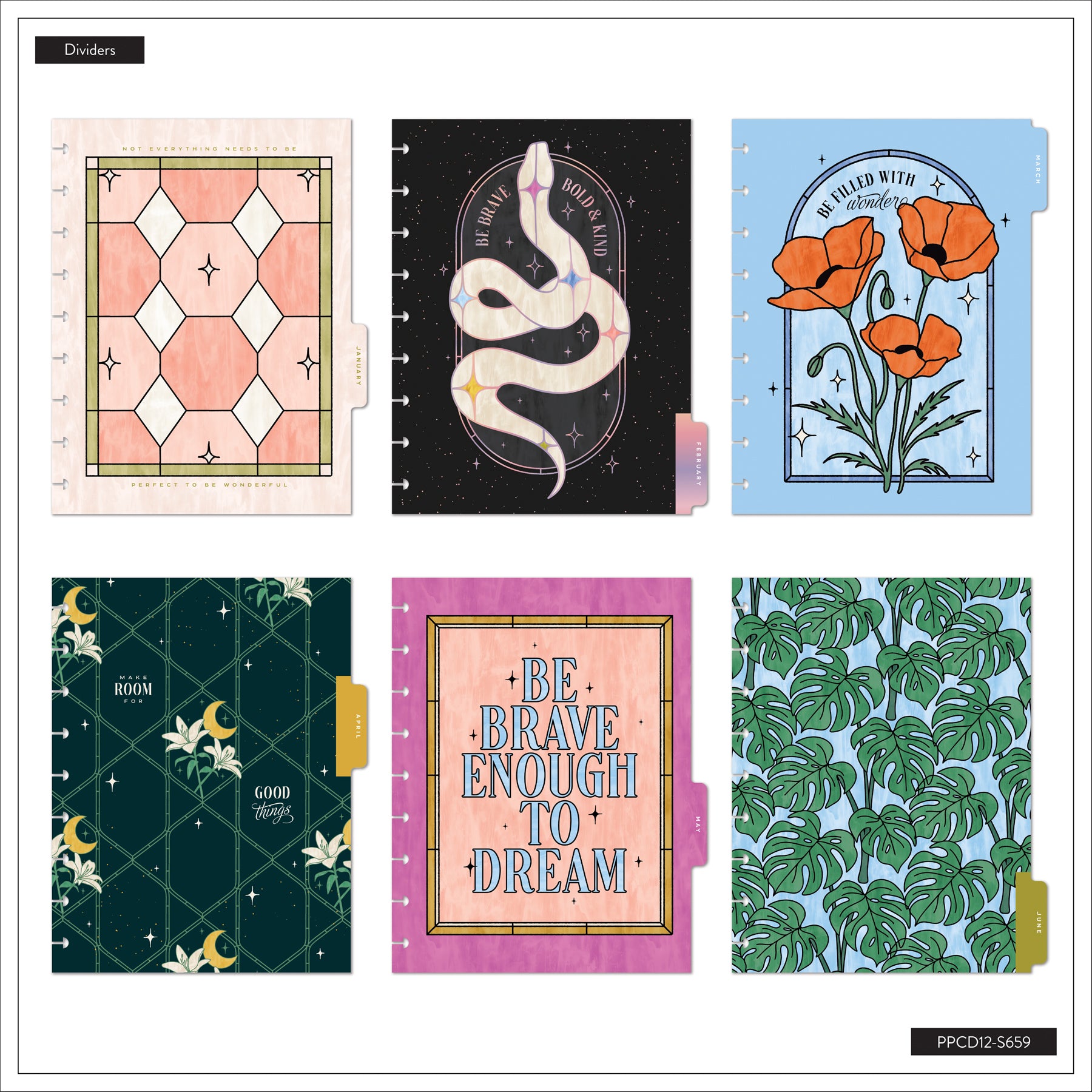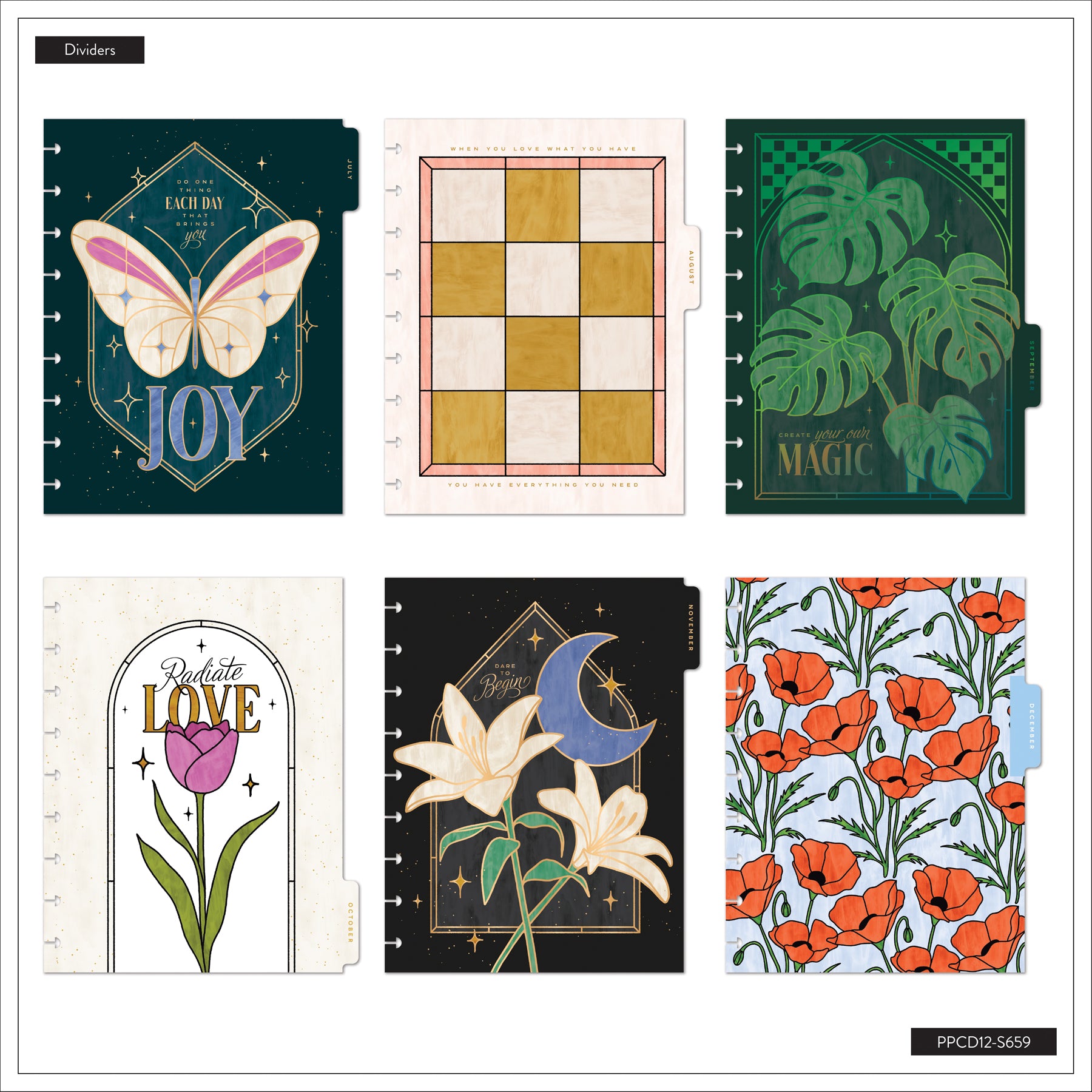 • 12 divider designs featuring floral + celestial artwork